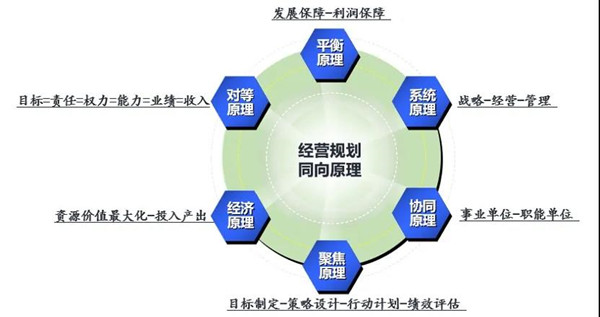 企業的有效運作應當遵循“戰略一經營一管理”三位一體運行的規律。戰略著眼于長遠規劃,指明企業前進的方向;管理側重日常運營,確保企業運作的效率;而年度經營計劃則是對上承接方向,對下保障效率,達成戰略和管理的結果。綜合分析年度經營計劃在企業管理中的地位和作用,我們認為,科學的年度經營計劃應當符合六大基本原則,方能將經營的各方面要素統合籌劃,實現同向發展。